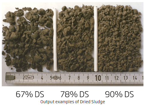 هدف از ارائه این سیستم خشک کن، کاهش حجم لجن/کاهش محتوای مایع و افزایش محتوای جامد لجن است. بنابراین هزینه های دفع را به طور قابل توجهی کاهش داده و امکان استفاده مجدد را میسر می کند. عملکرد خشک کن بدین صورت است که با پمپ لجن به داخل دستگاه، لجن به طور یکنواخت در برابر سطح گرمایش بیرونی پخش می کند. سیال گرم کننده (بخار، آب یا روغن حرارتی) در خارج از سطح گرمایش جریان دارد و گرما به طور غیر مستقیم به فیلم لجن منتقل می شود. لجن روی دیواره گرم شده پخش می شود. تیغه های اختلاط، لجن را به صورت یک مسیر مارپیچ بر روی سطح گرم شده حمل می کنند. زمان نگهداری لجن در سیستم در مقایسه با سایر روشها بسیار اندک است. با گرم شدن لجن، رطوبت آزاد می شود و به سمت کندانسور هدایت می شود. پس از مدت کوتاهی، لجن خشک شده که محتوای جامد آن از 30% تا 90% متغییر است، به خارج از خشک کن و در صورت نیاز به پیچ خنک کننده منتقل می شود.